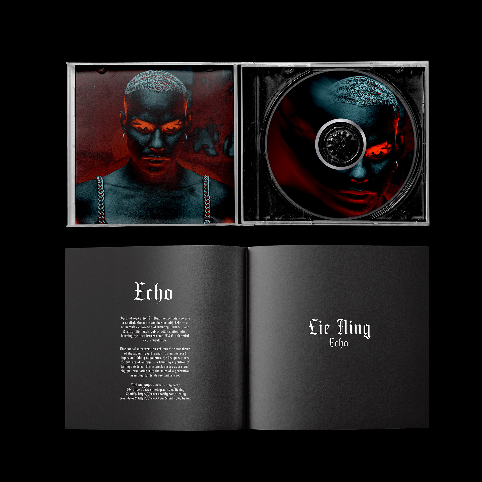 Inspired by the Berlin-based artist Lie Ning’s track “Echo,” this album artwork explores themes of resonance, identity, and intimacy. Through layered imagery and surreal tones, the cover design embodies the emotional ripples of sound and memory.