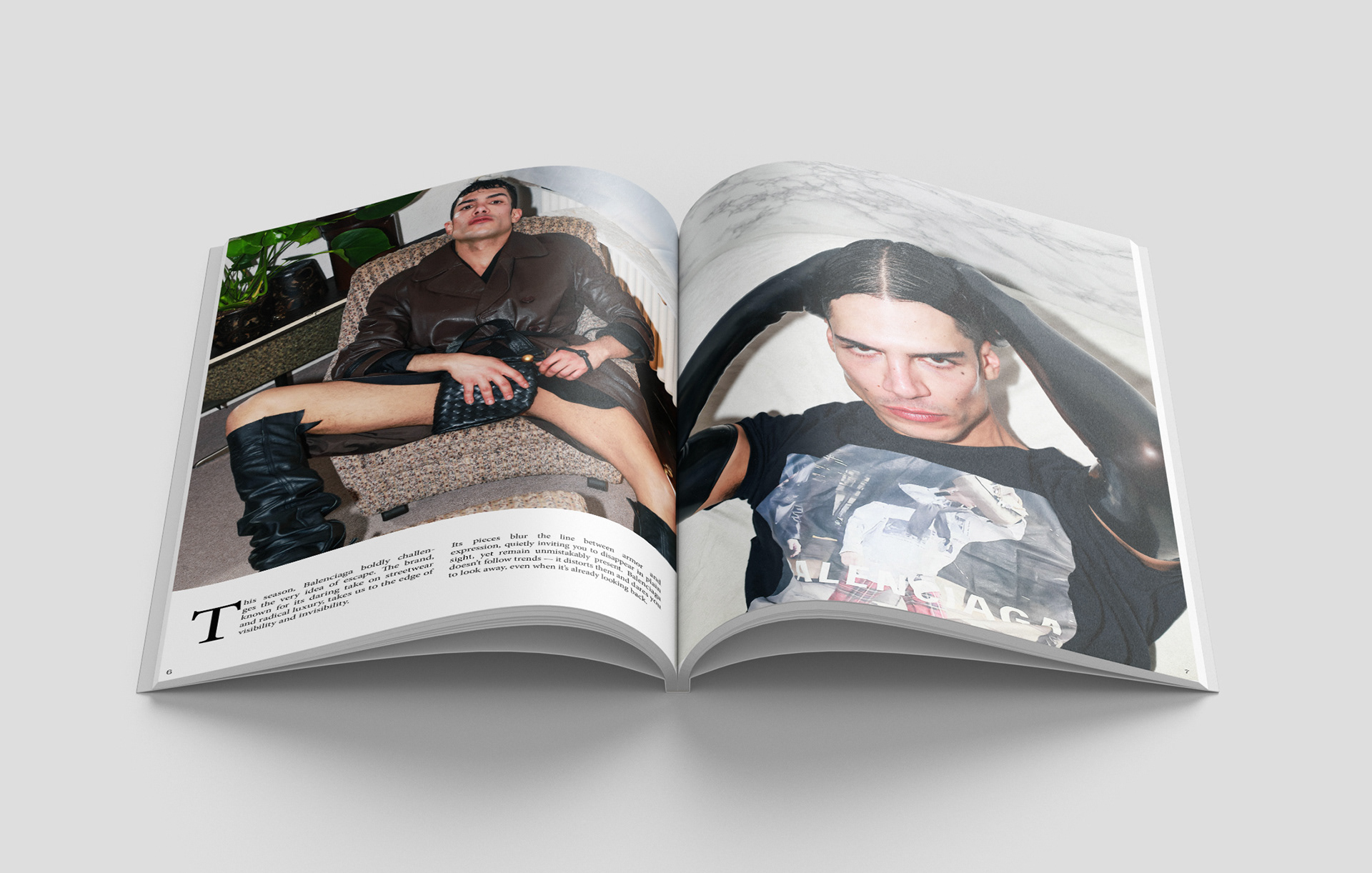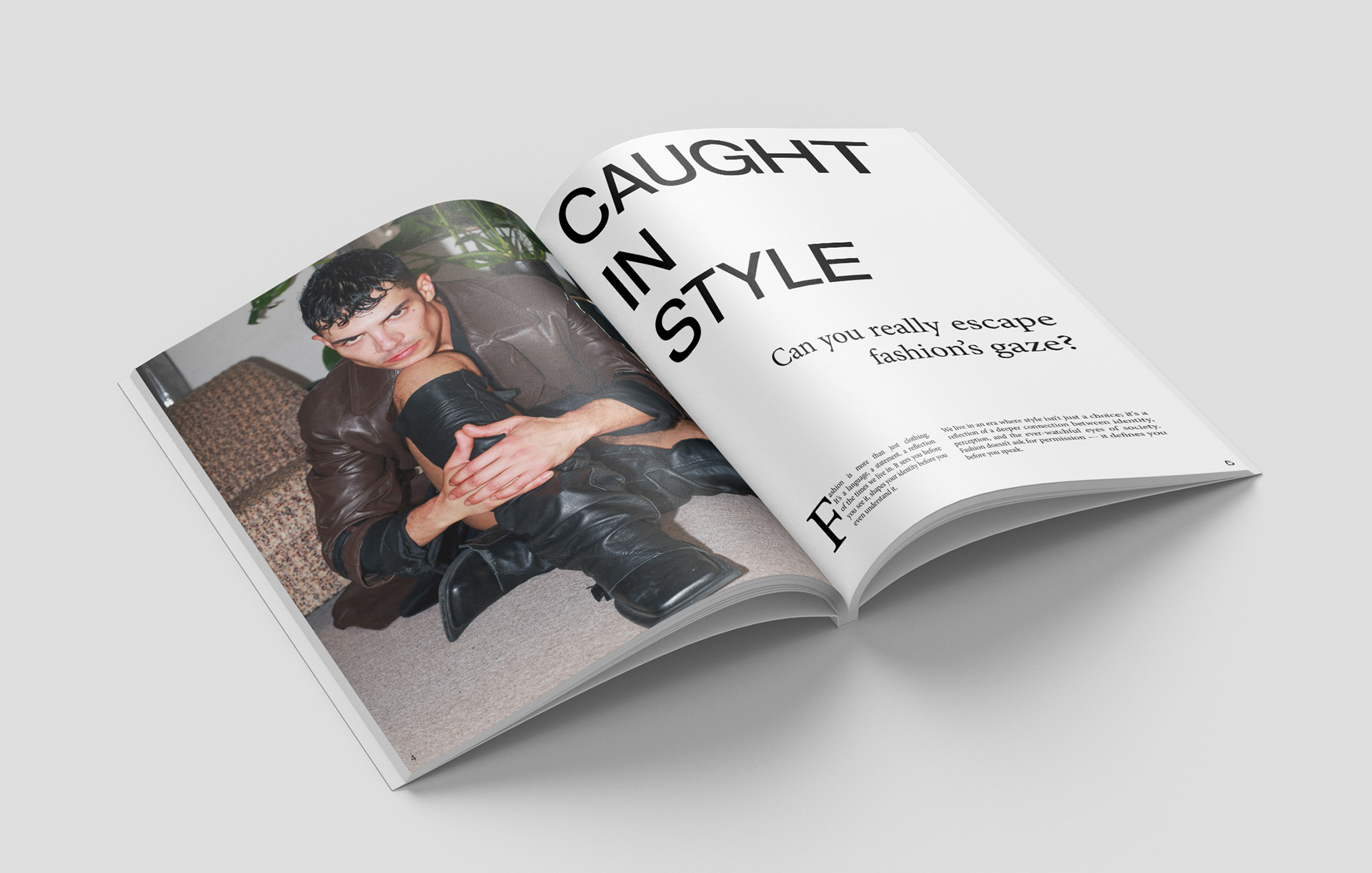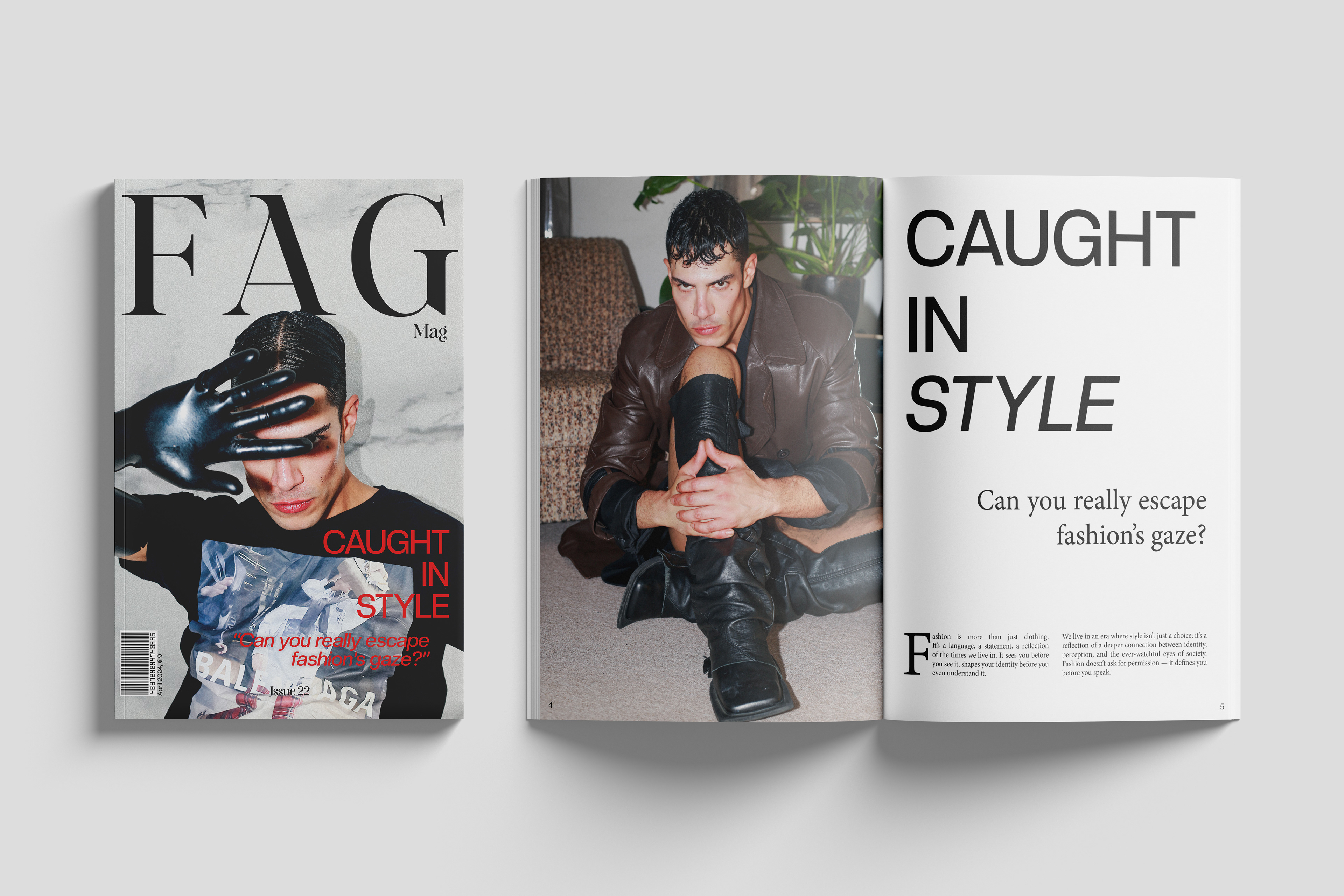 Can you escape fashion’s gaze? This high-concept editorial layout interrogates the interplay between fashion and surveillance. Inspired by luxury branding and contemporary aesthetics, the magazine showcases arresting photography, typographic contrast, and the allure of fashion‘s omnipresence.