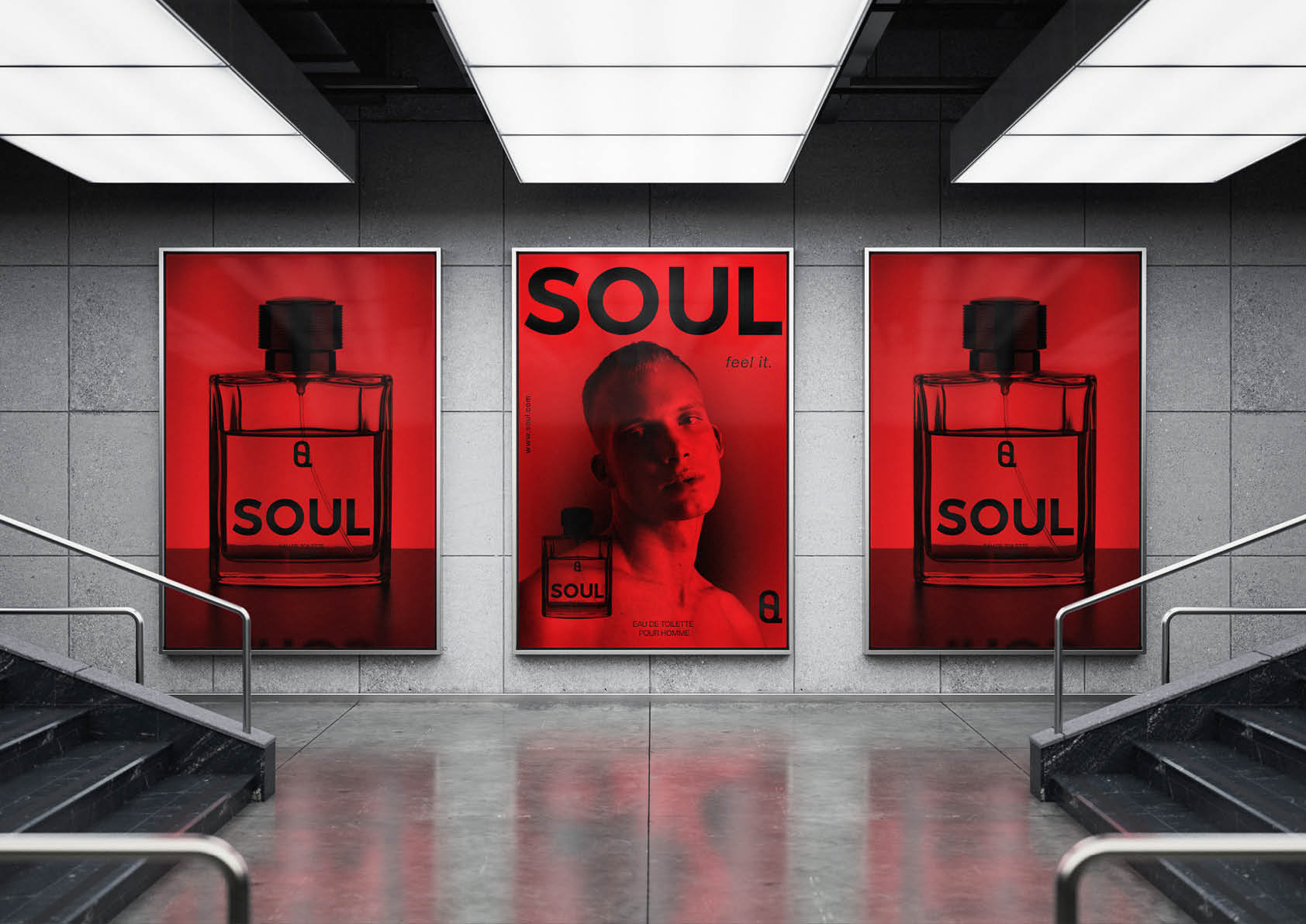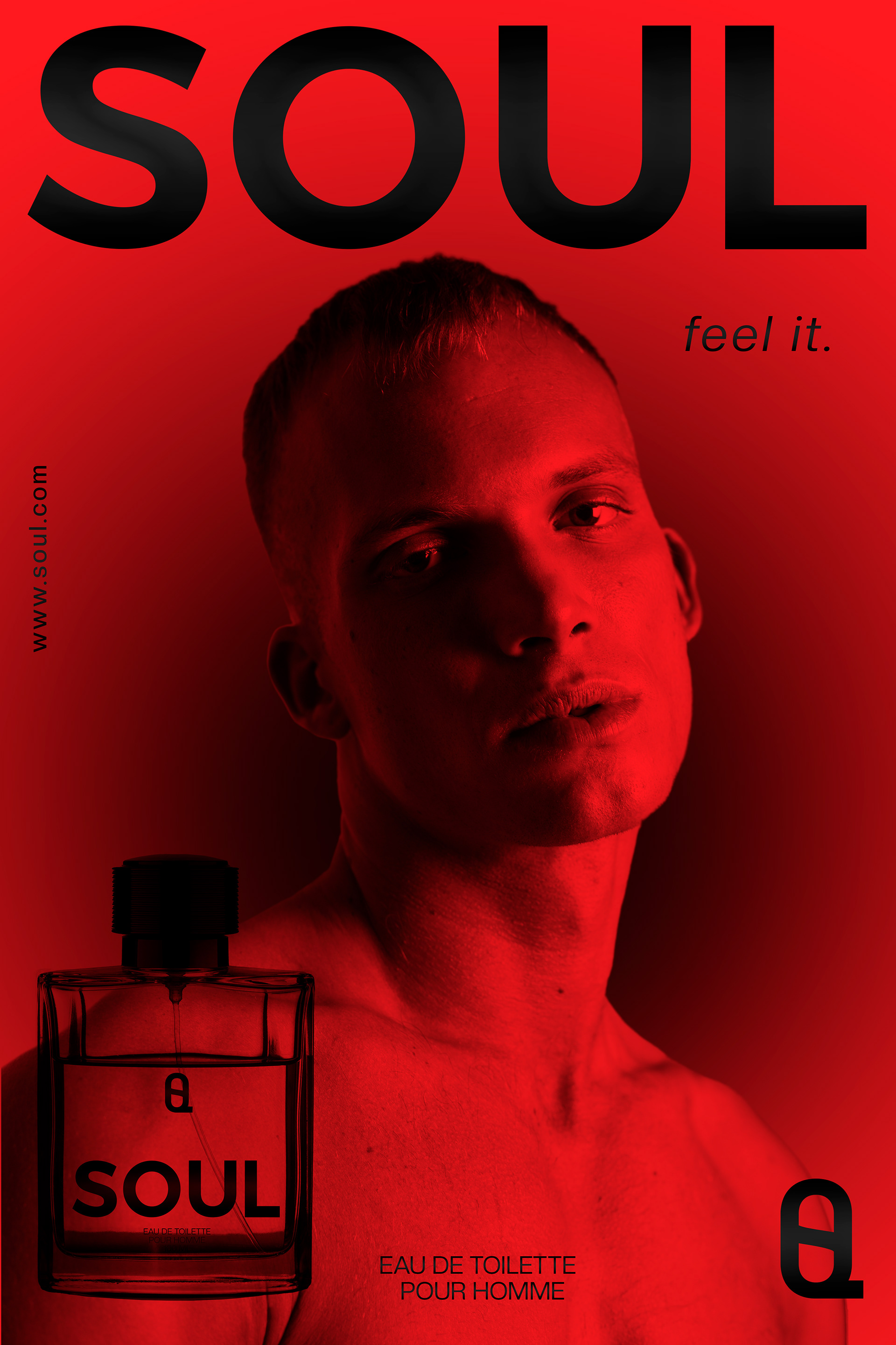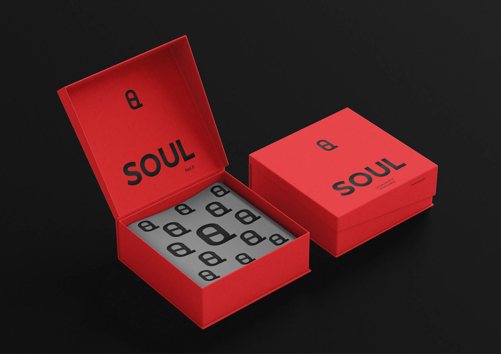 SOUL is a fragrance concept designed to embody sensuality, courage, and elegance. The campaign visualizes masculine intimacy through rich color, stark contrast, and minimalist elegance. The brand experience includes packaging mockups, tactile branding elements, and editorial photography.
